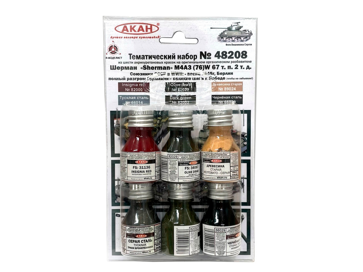Тематический набор из 6 акрилуретановых красок Шерман «Sherman» М4А3 (76)W 67 т. п. 2 т. д. Союзники СССР в WWII: - весна 1945г, Берлин. Полный разгром Германии - великие шаги к Победе (чтобы не забывали!) на оригинальном разбавителе.