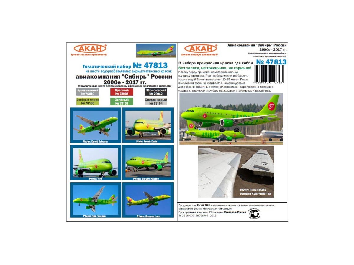 Тематический набор из 6 акрилатлатексных водоразбавляемых красок Авиакомпания "Сибирь" - современная Россия (2000 - 2017г) на оригинальном разбавителе.Используется для окраски сборных модел…