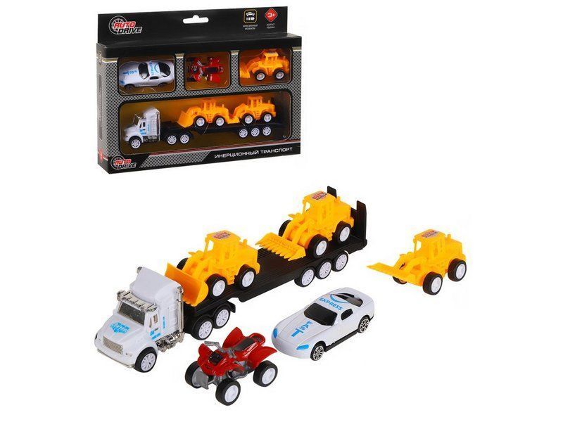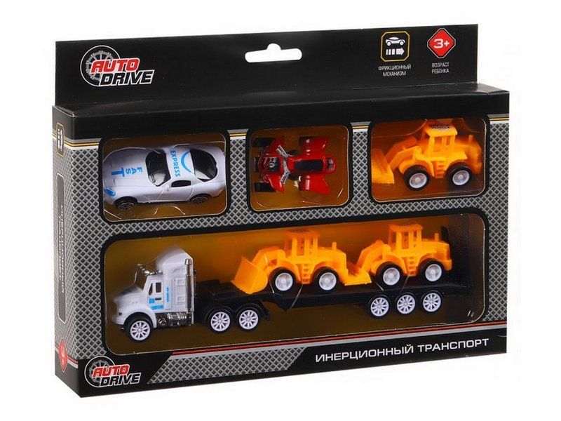 Набор AUTODRIVE «Транспорт» фрикционный, автовоз 20см с транспортом 4-7см, в/к 24*4,5*18 см
