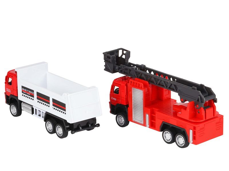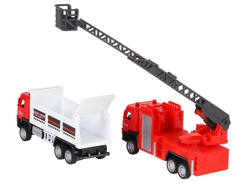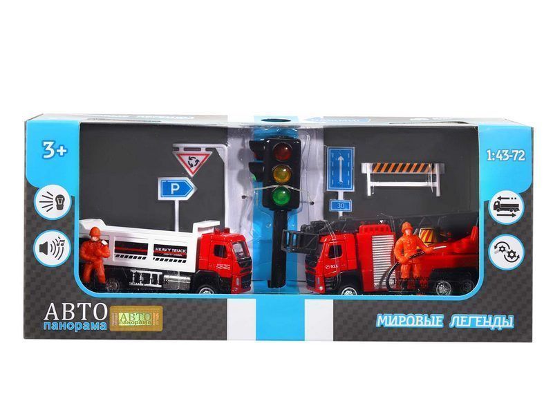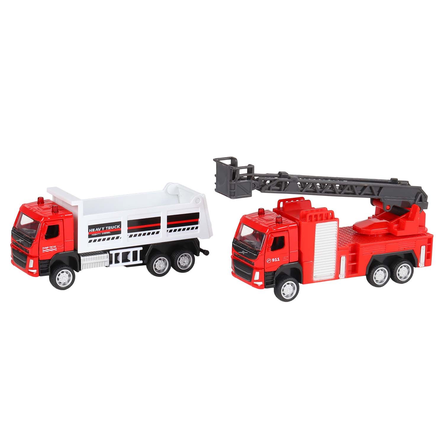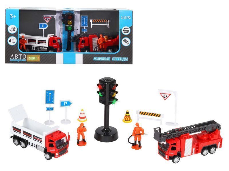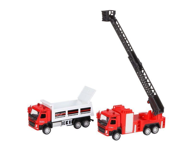 Набор металлических машинок VOLVO FM "Пожарная служба" - масштабные модели настоящей спецтехники, с которыми юный герой будет спасать жителей своего игрушечного города от огня, придумывая множество новых сюжетов, ведь это сразу 2 машинки: пожарная машина и грузовик.