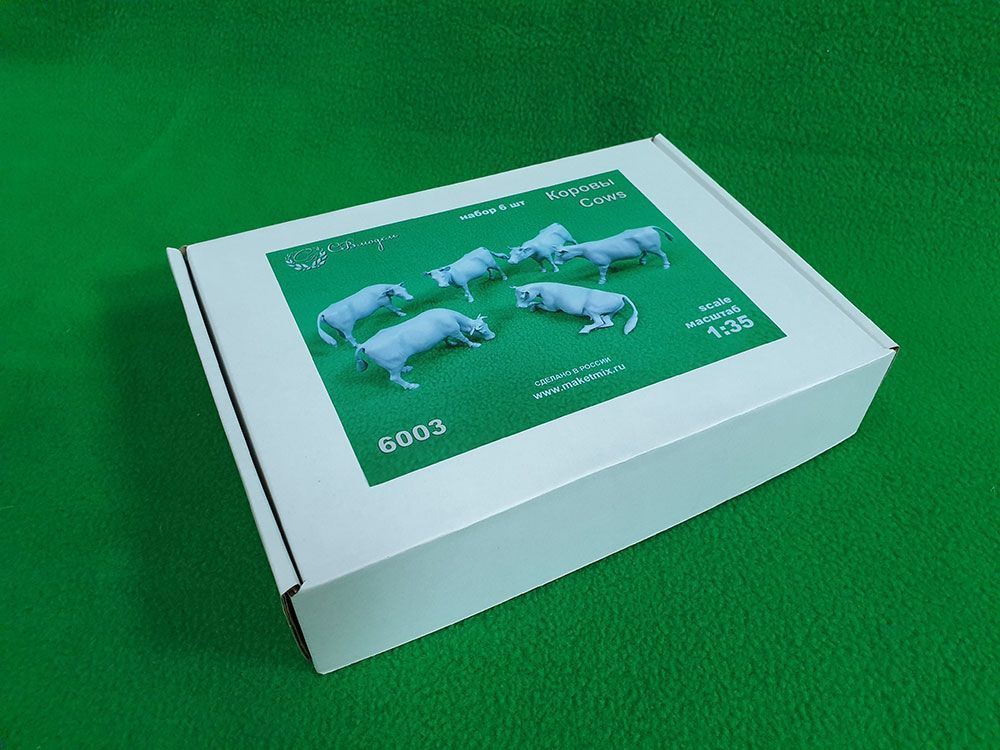 Набор из шести высокодетализированных реалистичных фигурок коров в различных позах. Послужат прекрасным украшением для ваших макетов и диорам.Фигурки изготовлены из фотополимерной смолы и…