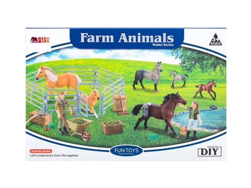 Набор фигурок животных MASAI MARA ММ205-070 серии "Мир лошадей": Конюшня игрушка 16 пр.