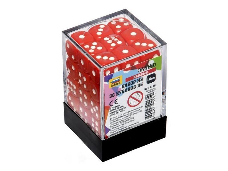 Набор красных игровых кубиков ZVEZDA "D6", 12мм, 36 шт