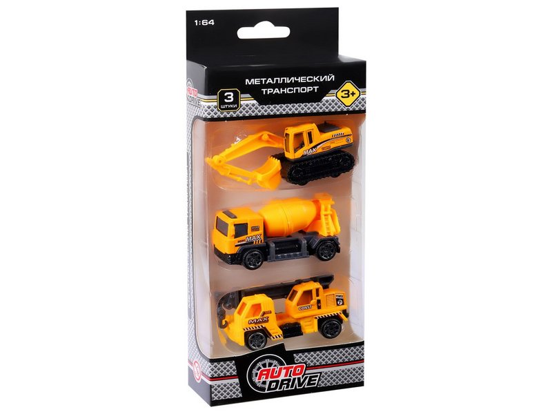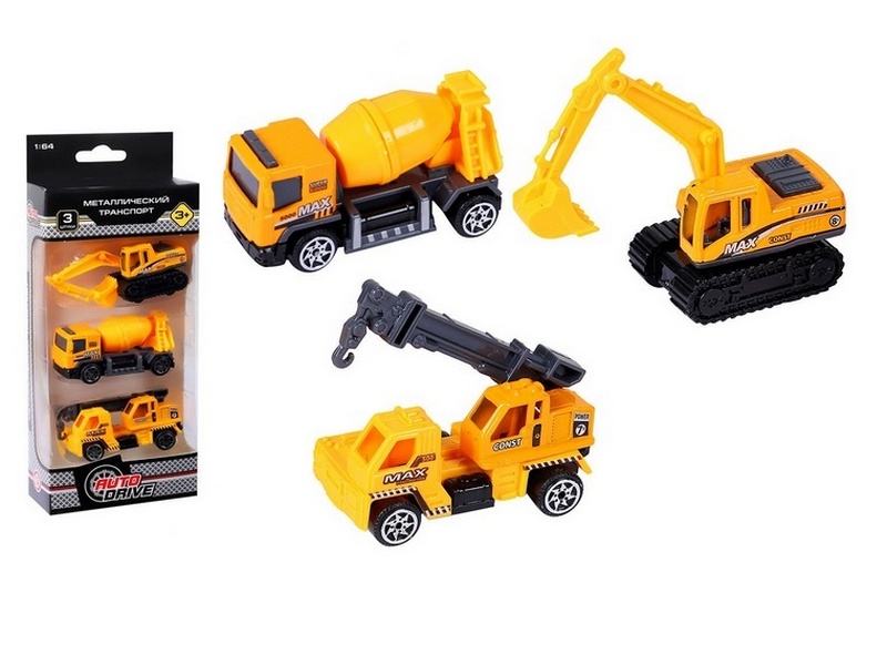 Набор металлических машинок AUTODRIVE JB0403962 Строительная техника 3шт, в/к 23*9,4*4см.