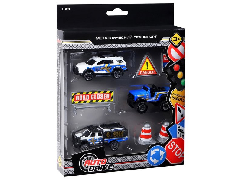 Тематический набор транспорта "Полицейская техника" от AUTODRIVE. Металлический корпус делает игрушку крепкой и долговечной. Широкая линейка позволит реализовать любые увлекательные сюжеты, стимулируя фантазию и воображение. Разнообразные и интересные машинки из серии "Спецслужбы" подойдут для большинства игрушечных парковок, треков и гаражей.