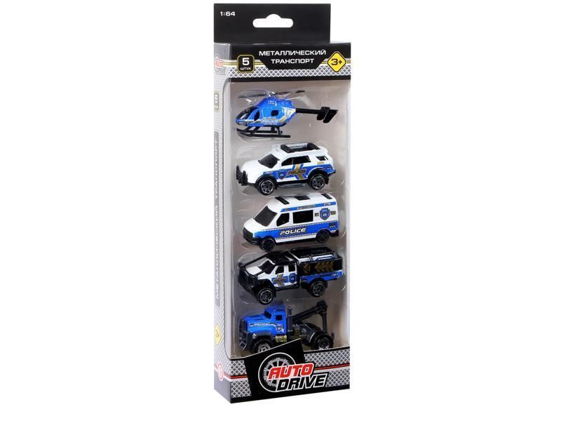 Тематический набор транспорта "Полицейская техника" от AUTODRIVE. Металлический корпус делает игрушку крепкой и долговечной. Широкая линейка позволит реализовать любые увлекательные сюжеты, стимулируя фантазию и воображение.