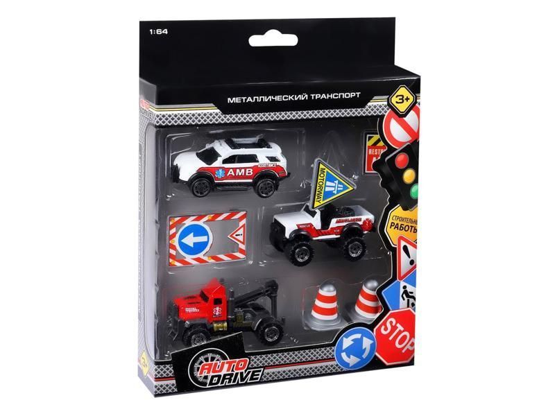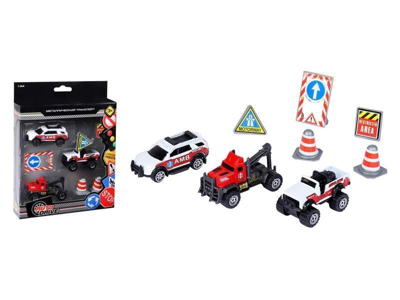 Набор металлических машинок AUTODRIVE Служба спасения 3шт (внедорожник, эвакуатор, джип)