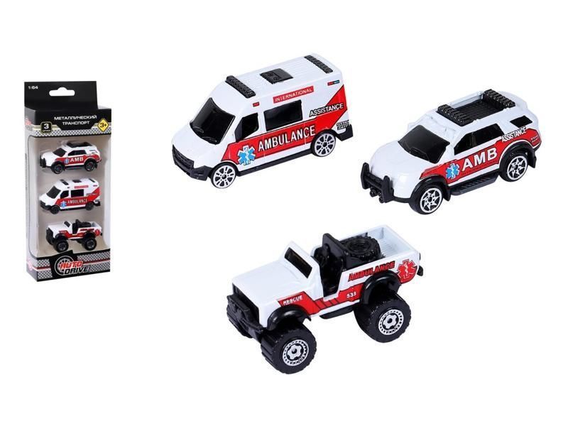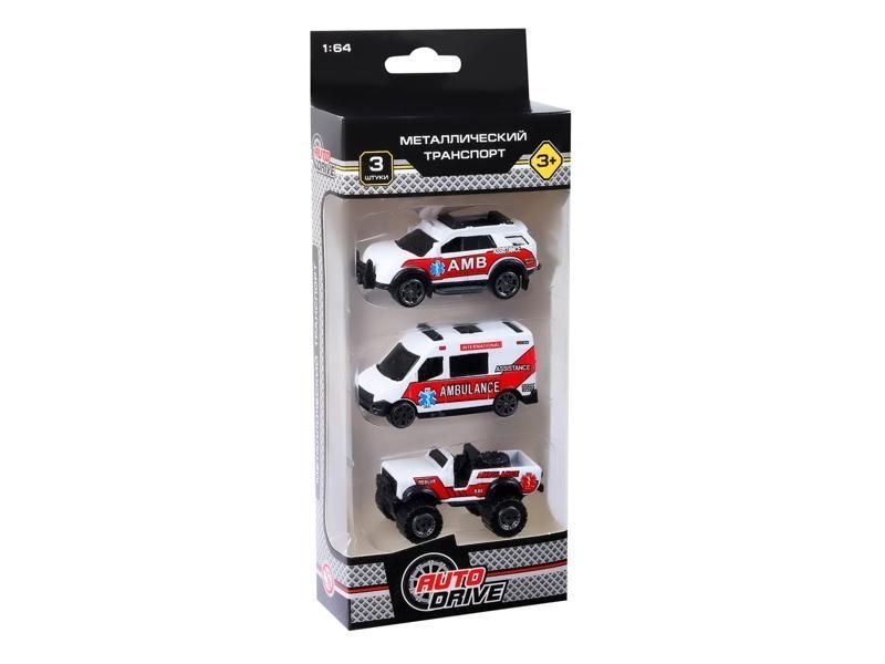 Набор металлических машинок AUTODRIVE Служба спасения 3шт. (внедорожник, фургон, джип)
