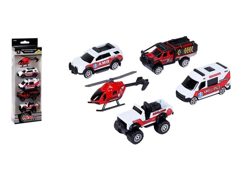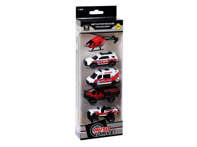Набор металлических машинок AUTODRIVE Служба спасения 5шт. в/к 29*9,5*4см.