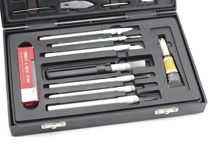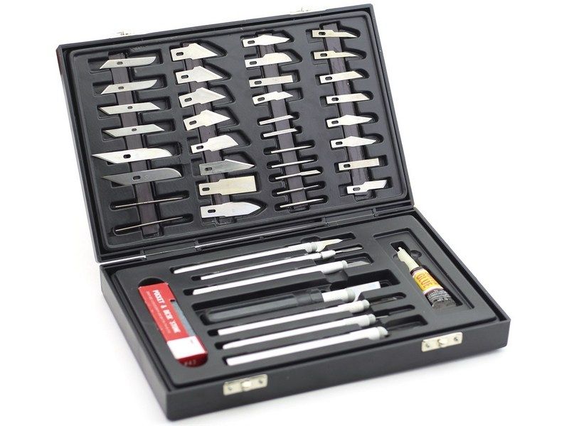 Многофункциональный комплект JAS 4007 из 51 предмета, использующихся для использующийся для вырезания трафаретов. Подходит для творчества, аэрографии, моделизма.