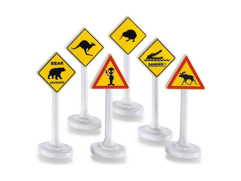 Комплект дорожных знаков Siku для идеальной ориентации на дорогах сельской местности. Знаки предупреждают о возможном появлении диких животных на дорогах: медведях, лосях, кенгуру, киви, крокодилах. А если вдруг вблизи приземляется НЛО, инопланетянин дружески приветствует вас. Знаки, входящие в комплект, выполнены из высококачественного пластика.