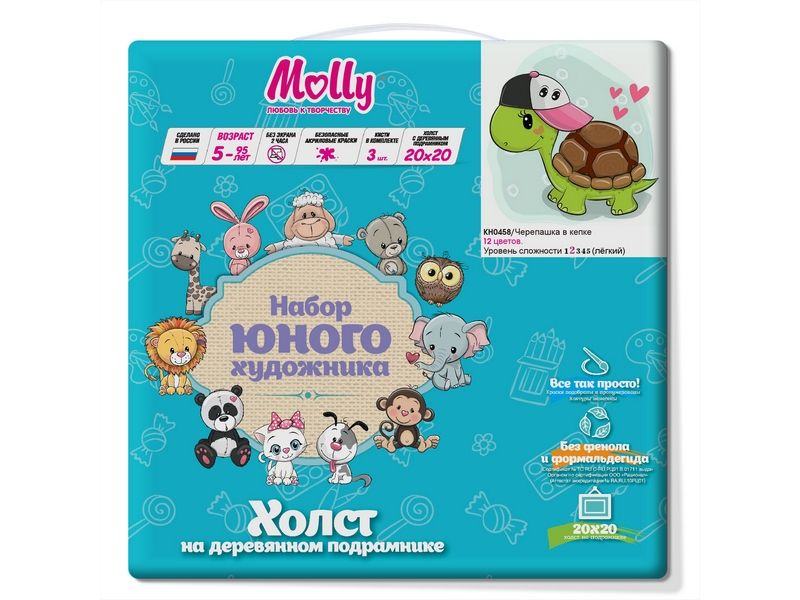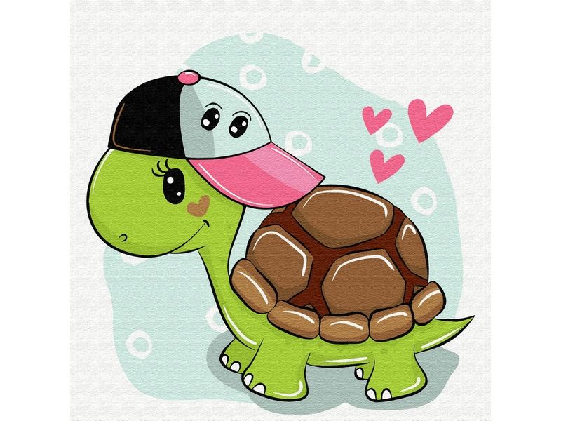С помощью набора для творчества можно нарисовать веселую черепашку в кепке. Для такого творчества не требуются специальные художественные навыки. Нужно лишь следовать инструкции и время от времени сверяться с цветовой схемой рисунка.