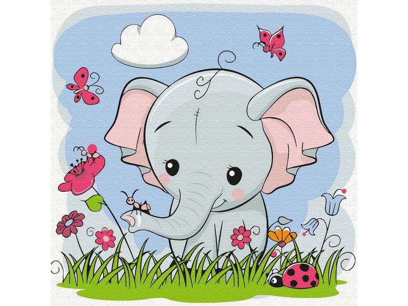С помощью набора для творчества можно нарисовать картину со слоником, сидящем на летней полянке в окружении бабочек, муравьев и божьих коровок. Для такого творчества не требуются специальные художественные навыки. Нужно лишь следовать инструкции и время от времени сверяться с цветовой схемой рисунка.