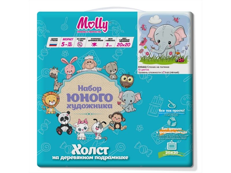 Набор юного художника 20Х20 СЛОНИК НА ПОЛЯНКЕ. (12 цветов)