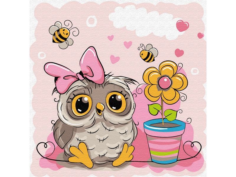 С помощью набора для творчества можно нарисовать милого совёнка с цветочным горшком. Над цветком летают пчелы. Для такого творчества не требуются специальные художественные навыки. Нужно лишь следовать инструкции и время от времени сверяться с цветовой схемой рисунка.