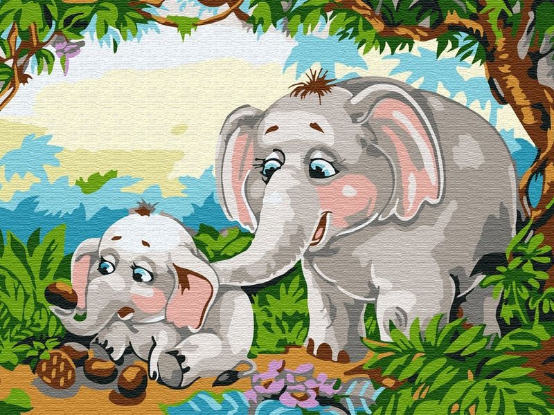 С помощью набора для творчества можно нарисовать двух слонов, прячущихся в тени пальм от палящего солнца. Самое время отведать припасенные в укромном месте ананасы и кокосы. Для такого творчества не требуются специальные художественные навыки. Нужно лишь следовать инструкции и время от времени сверяться с цветовой схемой рисунка.