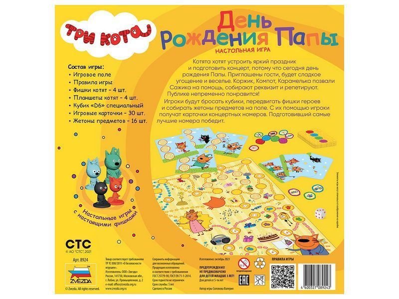 Игроки будут бросать кубик, передвигать фишку своего героя по клеткам игрового поля и собирать жетоны предметов. С помощью предметов игроки получат карточки концертных номеров.
