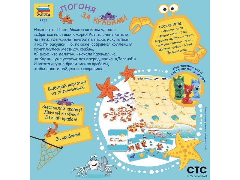 Настольная игра ZVEZDA Три кота. Море приключений. Погоня за крабами