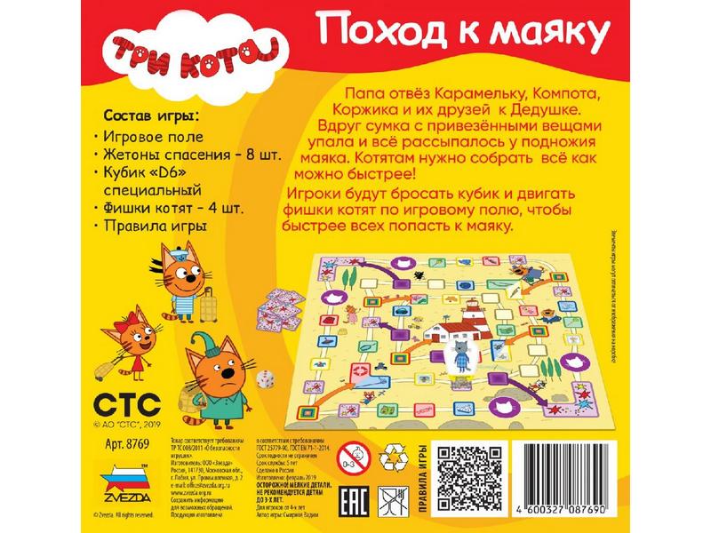 Настольная игра ZVEZDA "Три кота. Поход к маяку.", детская