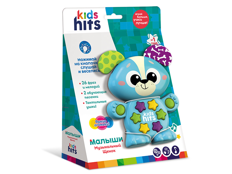 Обучающая игрушка Kids Hits серии Малыши "Музыкальный щенок" станет незаменимым помощником в образовательном процессе вашего малыша. Яркие светящиеся кнопки и мягкие шуршащие уши привлекают внимание и создают атмосферу веселья и радости.