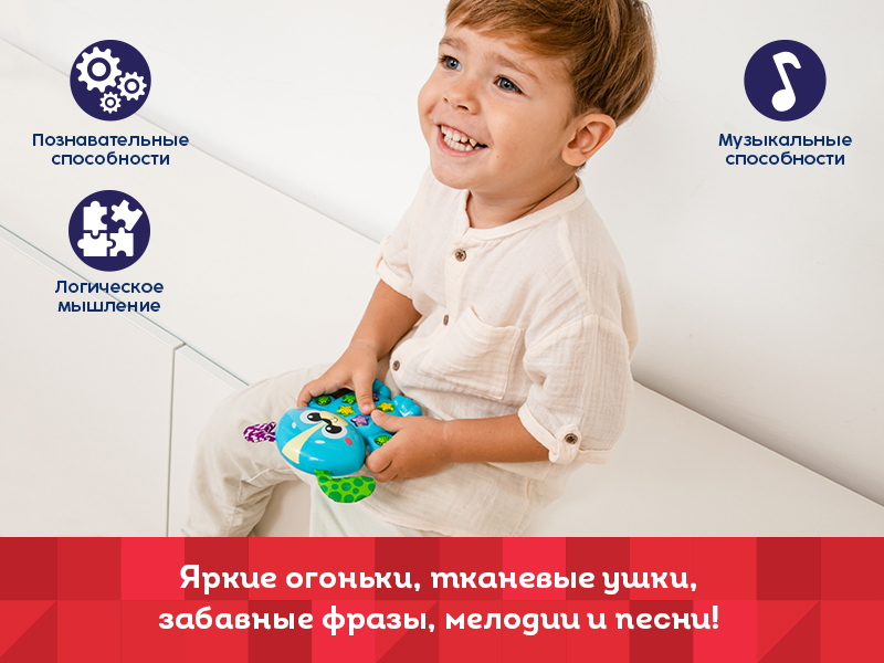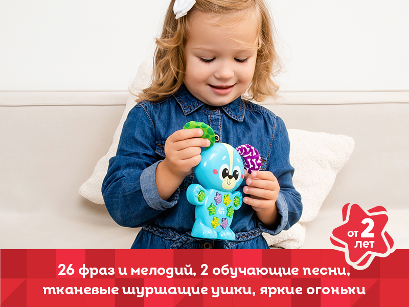 Нажимая на кнопки, юные исследователи смогут погрузиться в увлекательный мир знаний. Эта игрушка предлагает 26 фраз и мелодий, которые не только развлекут, но и познакомят с основами окружающего мира. Забавные стихи о зверушках и познавательные мелодии развивают музыкальные способности, а также логическое мышление. Две обучающие песенки помогут закрепить полученные знания в игровой форме.