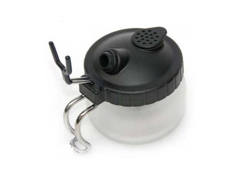 Очиститель для аэрографа в виде стеклянной баночки с пластиковой крышкой. Предназначен для выдувания остатков ЛКМ из воздушной кисти. Воздух с частицами ЛКМ поступает непосредственно в стеклянную ёмкость, не загрязняет помещения и обеспечивает безопасную чистку инструментов после использования.