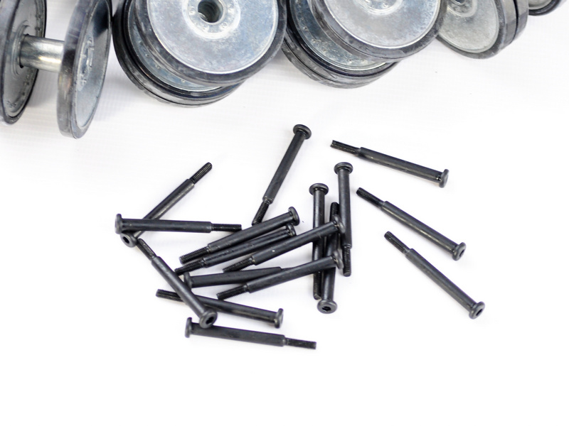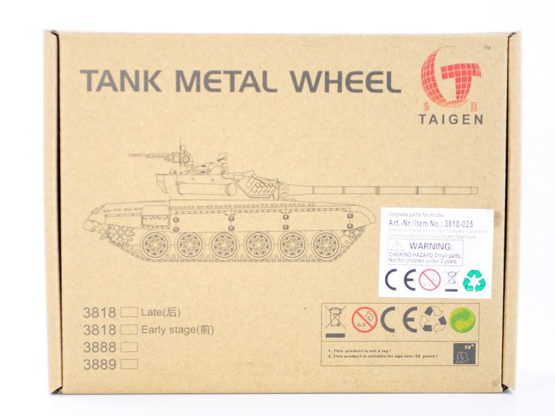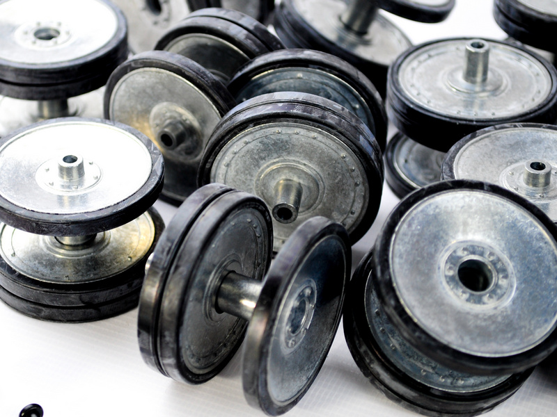 Опорные катки металлические с резиновыми бандажами и оси колёсные для танка Heng Long и Taigen Tiger 3818.