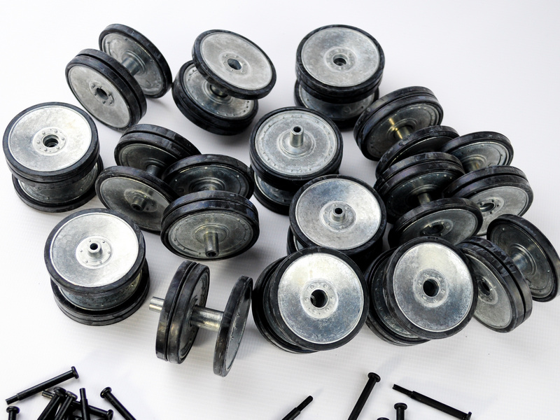 Опорные катки металл. с резиновыми бандажами и оси колёсные для TG Tiger ранняя версия