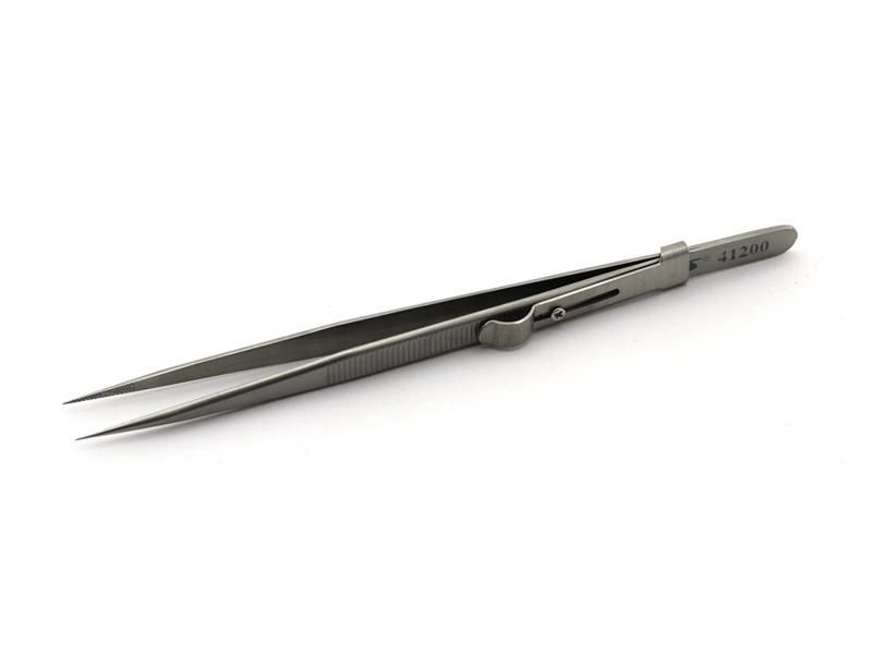 Пинцет прямой с фиксатором, 165 мм