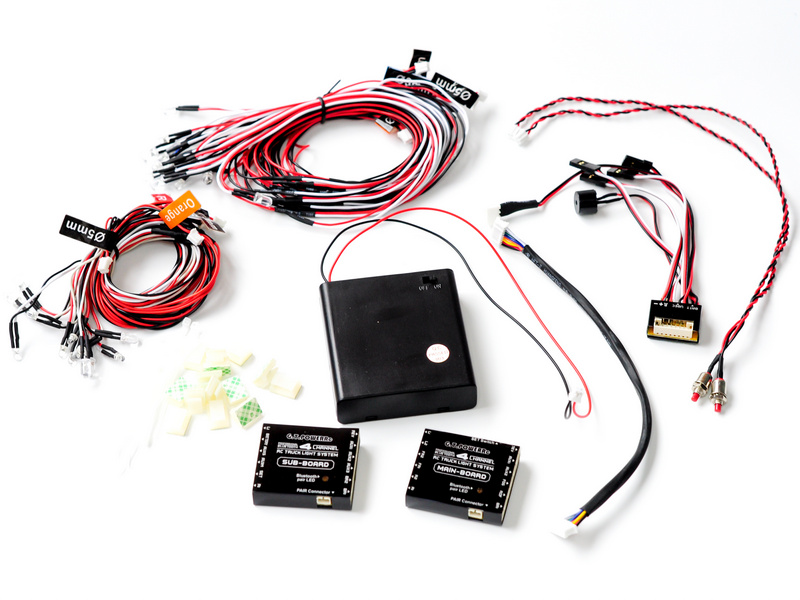 Профессиональное освещение G.T.Power для радиоуправляемых грузовиков и других автомоделей. Комплект состоит из двух контроллеров с возможностью управления через Bluetooth.В комплекте: