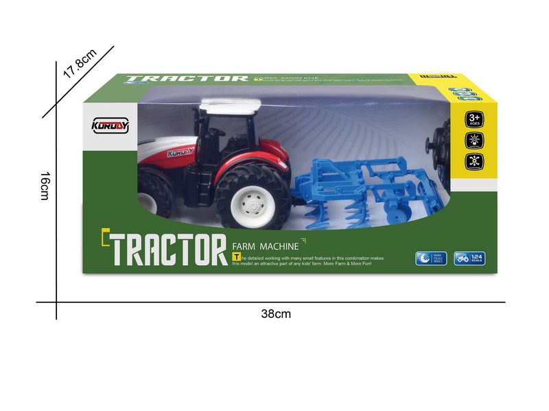 Трактор двигается вперед, назад, способен повернуть налево и направо, включить/выключить свет, а также включается демонстрационный режим. К тракторам Korody легко прицепляется навесное оборудование, чтобы показать детям, как возделываются поля и выращиваются сельскохозяйственные продукты. Трактор имеет в комплекте дисковый культиватор. Культиватор легко снимается и может перемещаться самостоятельно.