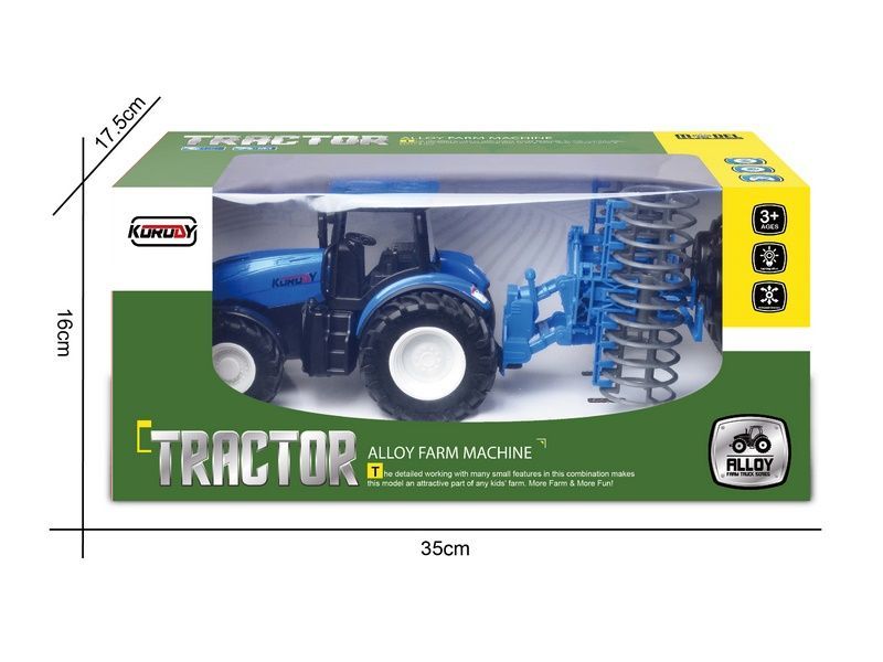 Трактор двигается вперед, назад, способен повернуть налево и направо, включить/выключить свет, а также включается демонстрационный режим. К тракторам Korody легко прицепляется навесное оборудование, чтобы показать детям, как возделываются поля и выращиваются сельскохозяйственные продукты. Трактор имеет в комплекте сеноподборщик. Сеноподборщик легко снимается и может перемещаться самостоятельно.