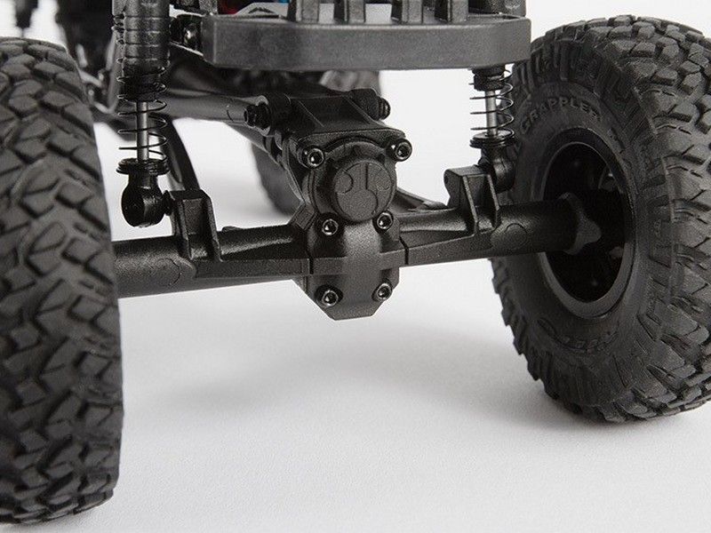 Реалистичное шасси оснащено 3-рычажной передней и 4-рычажной задней подвесками. Сочетание пружинно-гидравлических амортизаторов и прочных пластиковых опор подвески не уступает крупным моделям Axial. Дорожный просвет увеличен за счет осей с червячными шестернями, а низкое передаточное соотношение уменьшает эффект скручивания подвески (так называемый «карданный эффект»).