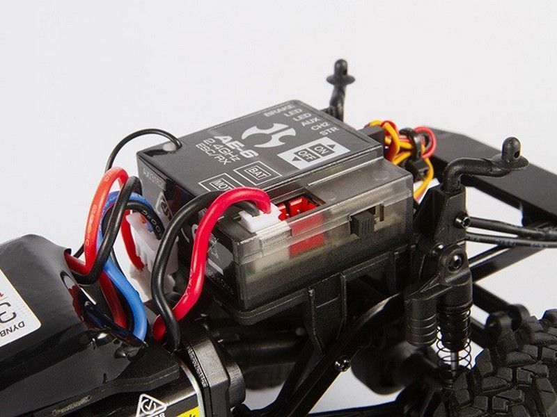 Кроме того, SCX24 Deadbolt на 100% готов к заезду сразу после покупки. В комплект входит все необходимое: собранный автомобиль, 2-канальный пульт управления Axial 2,4 ГГц с регулятором скорости и приемником в одном блоке, сервопривод, коллекторный электродвигатель Dynamite® 88T, батарея LiPo 350 мА·ч 2S 7,4 В, зарядное устройство USB для батарей LiPo и даже четыре батареи АА для передатчика.