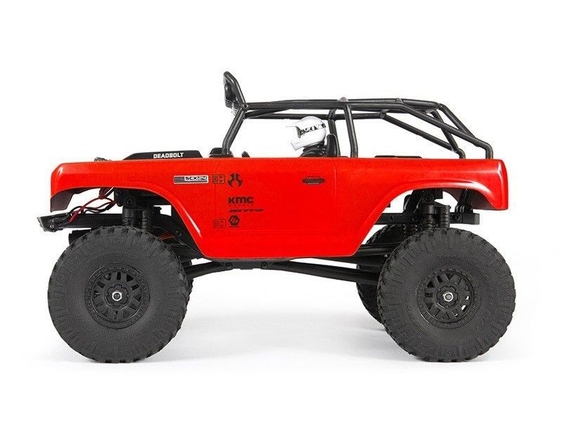 С двигателем 180 и батареей LiPo SCX24 Deadbolt отлично показывает себя на трассе. Модель имеет укороченный кузов, выштамповку на капоте и литой каркас безопасности со светодиодной балкой. Внутри установлена фигурка водителя. Реалистичный внешний вид завершают лицензированные колеса KMC XD229 Machete Crawl с шинами Nitto Trail Grappler.