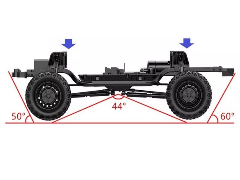 Металлическая рама, мосты, прочное шасси, адаптированное к различным дорожным условиям обеспечивают непревзойденную надежность модели. Тонкая настройка рулевого управления обеспечивает более реалистичное управление. Управление газом точно имитирует работу дроссельной заслонки, также реализована двухскоростная коробка передач для движения автомобиля с высокой и низкой скоростью.