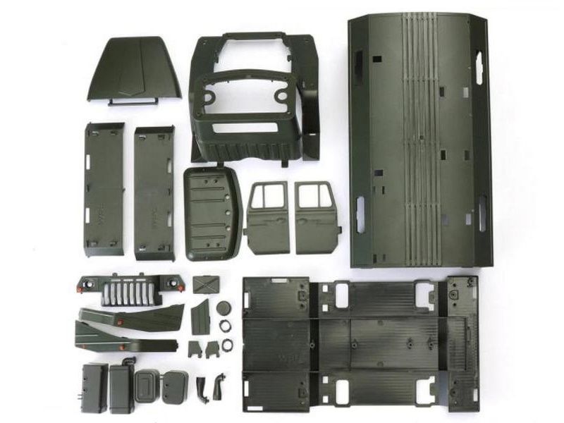 Собранный из комплекта радиоуправляемый грузовик имеет богатую деталировку и более высокую производительность. Детали кунга и кабины изготовлены из прочного АВS пластика и устанавливаются на металлическую раму. Кроме металлической рамы в комплекте имеются металлические корпуса осей, латунные шестерни, двухскоростная коробка передач, усиленные колеса, металлические кулаки, приводные валы, металлические рулевые тяги и т. д. Эти детали можно покупать отдельно в качестве апгрейда модели, но это получится значительно дороже!