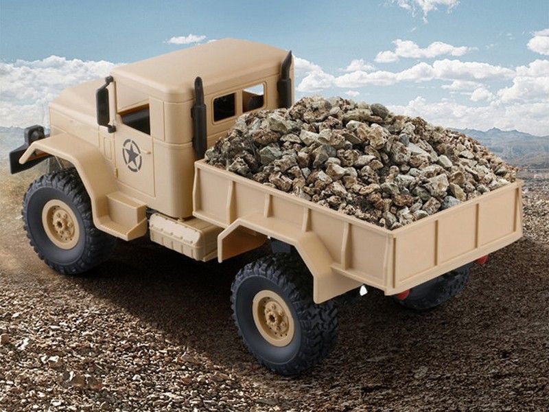 Радиоуправляемый военный грузовик WPL Military Truck имеет полный привод и большие резиновые колеса, что позволяет ему легко преодолевать самые разные препятствия. Металлическая подвеска позволяет нагружать его тяжелыми грузами. Неровные дороги не проблема, так как у него есть износостойкие вакуумные шины и высокий дорожный просвет. Спереди у грузовика 2 мощные светодиодные фары, которые позволяют ему спокойно маневрировать в ночное время суток.