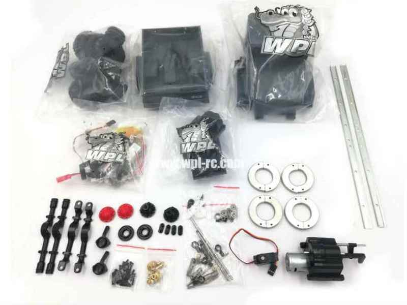 Комплект усиленных металлических и пластиковых деталей для сборки радиоуправляемой модели военного грузовика в масштабе 1/16. Модель оснащена полным приводом 4Х4, действующей рессорной подвеской и мощным коллекторным электромотором.