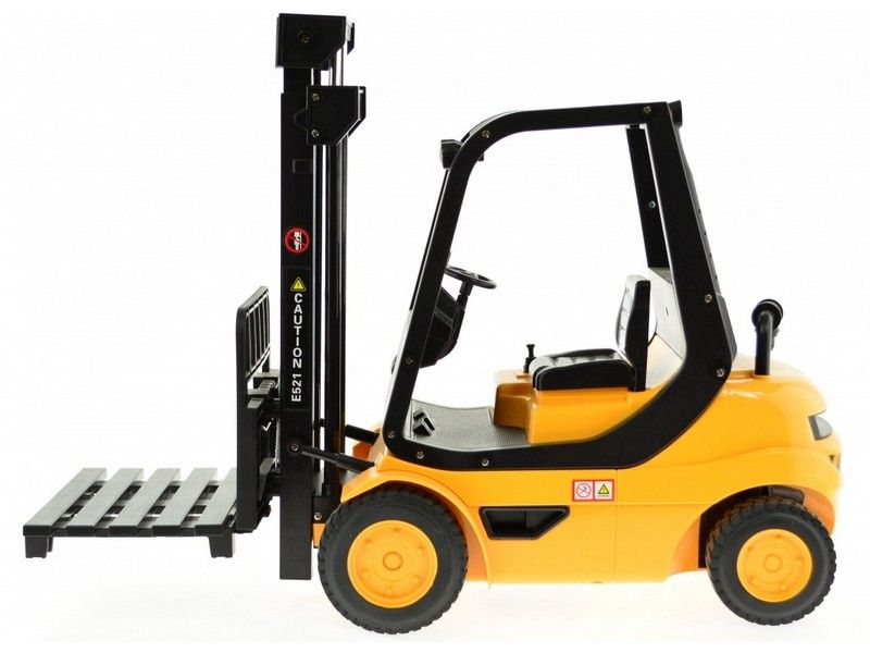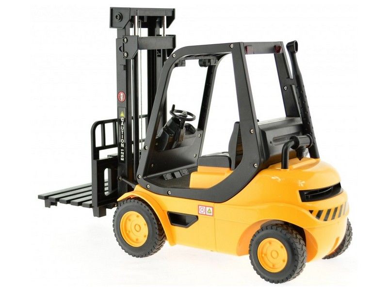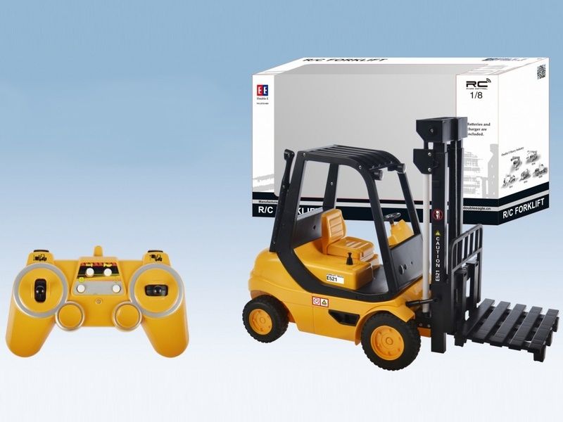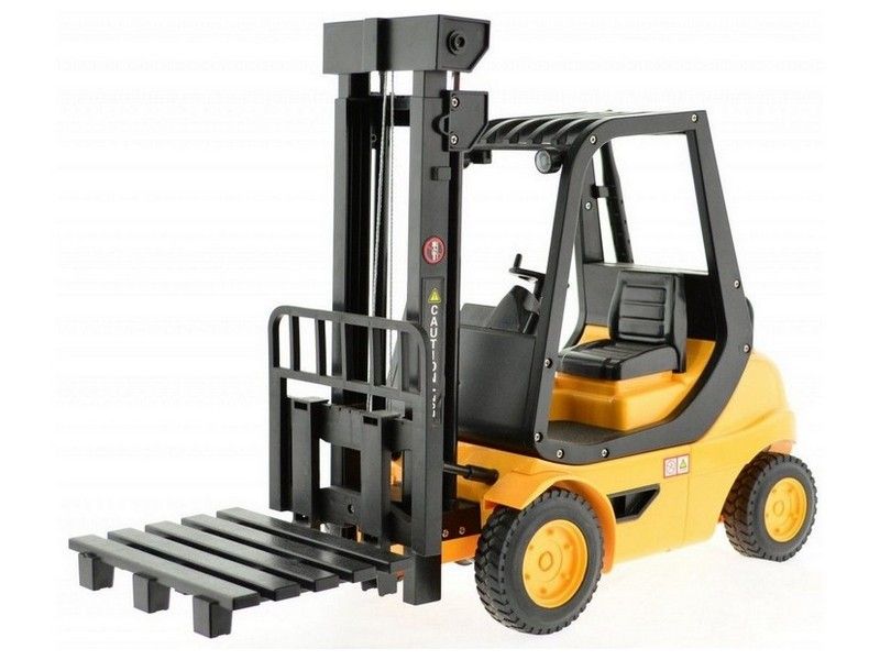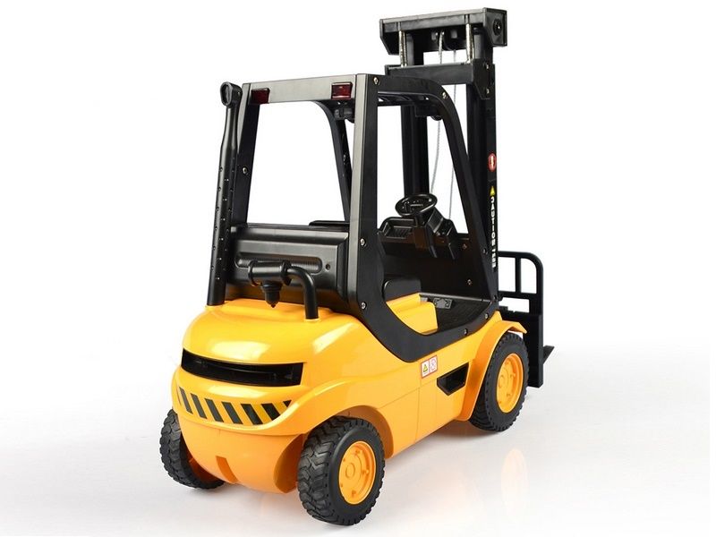 Радиоуправляемый вилочный погрузчик внешне выглядит, как настоящий. Он способен поднять предмет с земли, транспортировать его и поднимать наверх при помощи лифтового механизма. Данный погрузчик обладает высокой степенью детализации и оснащен звуковыми эффектами, имитирующими работу настоящего погрузчика за счет встроенных динамиков внутри. Он может двигаться вперед и назад, также в любую сторону. Модель идет сразу в собранном виде, поэтому можно сразу начать игру.