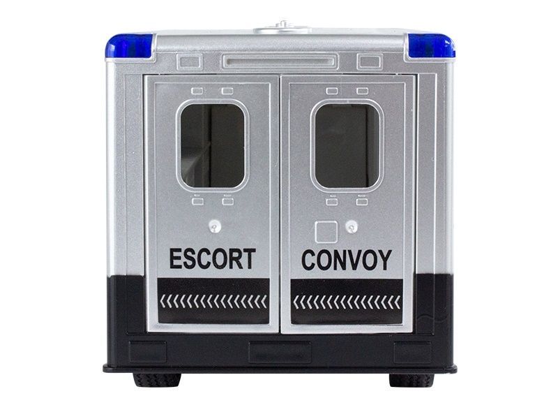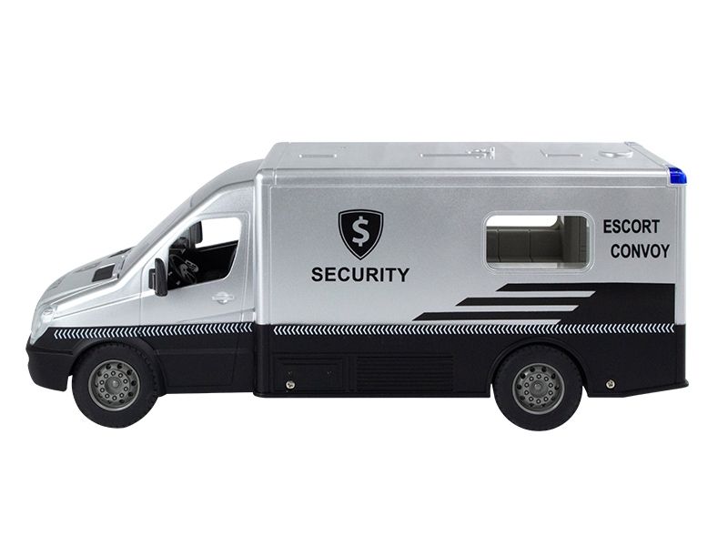 Отличный инкассаторский фургон с высокой детализацией деталей в масштабе 1:18. Все движения как у настоящей инкассаторской машины. Машинка имеет световые эффекты внутри фургона и звуковую сигнализацию. Кроме того, боковая и задние двери фургона открываются, поэтому с собой можно взять команду. В комплекте смелый полицейский с оружием, готовый задержать преступника.