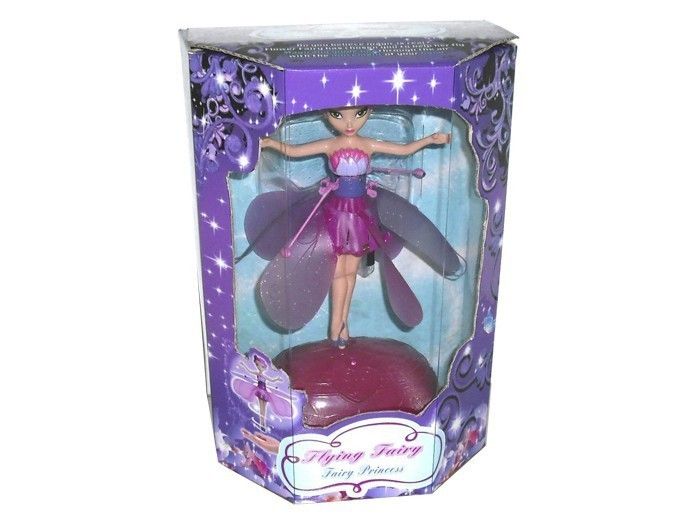 Сказочная фея упакована в яркую подарочную коробку, что делает подарок еще более интересным и незабываемым. Для начала полета достаточно достать игрушку из коробки и нажать на кнопку, расположенную на подставке. Двигатель моментально начинает работать, а кукла медленно парить над поверхностью комнаты.