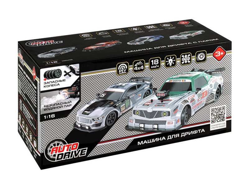 Радиоуправляемая скоростная машина для дрифта от AUTODRIVE станет отличным подарком для юных любителей экстремального вождения! Отличительной особенностью данной машины является функция пара, что в сочетании с подсветкой создает впечатляющий эффект пламени, вырывающегося из выхлопной трубы. Полный привод и исключительные скоростные характеристики (18+ км/ч) обеспечат машинке головокружительный дрифт.