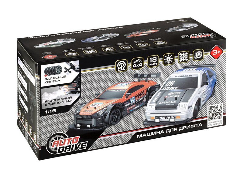 Радиоуправляемая скоростная машина для дрифта от AUTODRIVE станет отличным подарком для юных любителей экстремального вождения! Отличительной особенностью данной машины является функция пара, что в сочетании с подсветкой создает впечатляющий эффект пламени, вырывающегося из выхлопной трубы. Полный привод и исключительные скоростные характеристики (18+ км/ч) обеспечат машинке головокружительный дрифт.