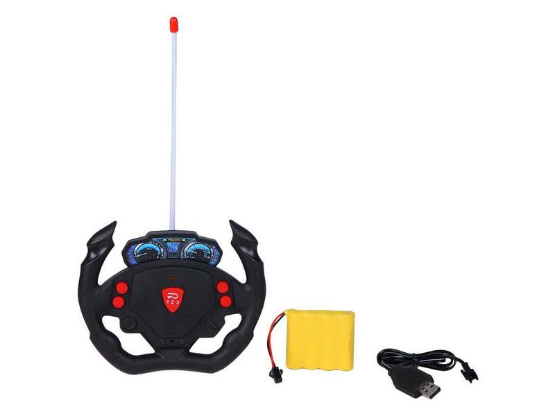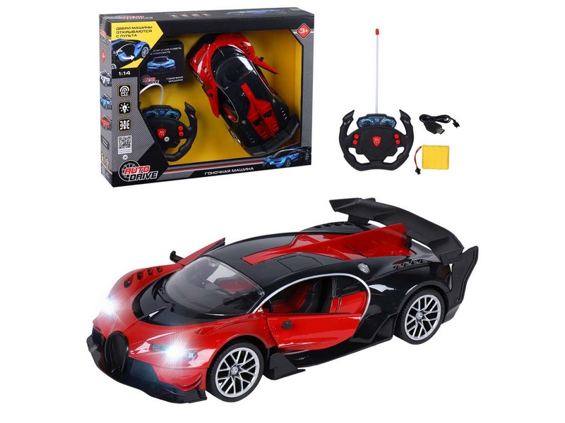 Управлять машинкой легко и комфортно, благодаря удобному пульту с гравитационным сенсором, выполненному в виде руля. Пульт позволяет совершать повороты не только при помощи кнопок, но и путём наклона в нужную сторону. Кроме того, у данной модели есть преимущество – открывающиеся с пульта двери. Это приводит детей в особенный восторг. Подсветка фар во время движения делает игру более интересной и реалистичной.