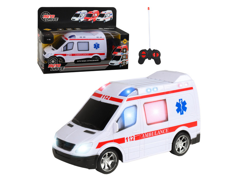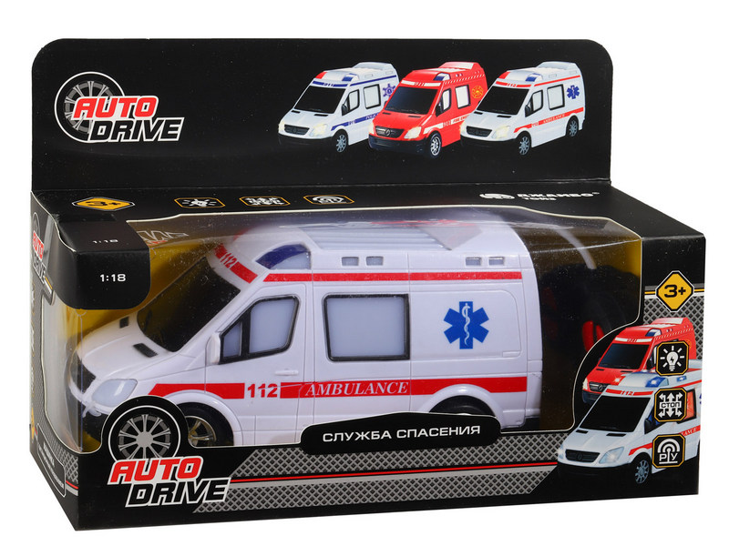 Радиоуправляемая машина AUTODRIVE "Скорая помощь", 1/18, белый, 27MHz, свет, в/к, 28*11*19,2см