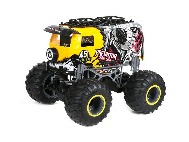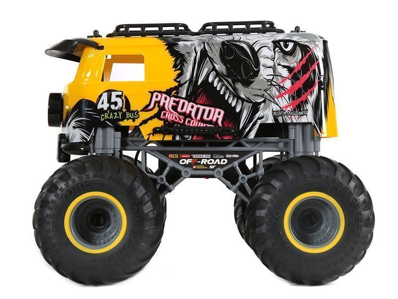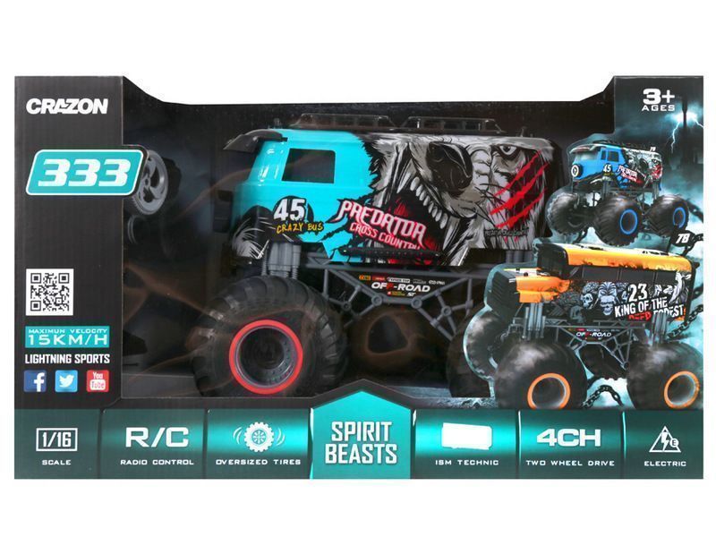 Радиоуправляемый МонстрТрак от компании Crazon преодолеет любые препятствия. Его не пугает бездорожье. Надувные резиновые колеса с натуральными покрышками амортизируют удары и помогают при прохождении препятствий. Любое покрытие - песок, трава, камни, асфальт - не доставит ему трудностей. Высокая скорость до 15 км/ч обещает незабываемые гонки.