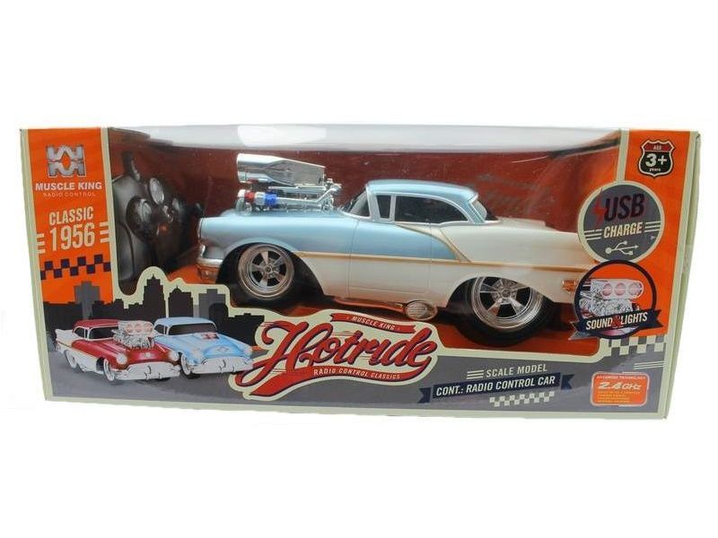 Тюнинговый ретро автомобиль с гоночным мотором для любителей со световыми и звуковыми эффектами.