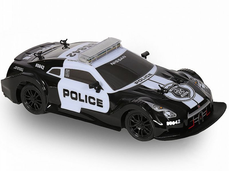 Радиоуправляемая модель автомобиля МХ Nissan GTR Полиция. Модель выполнена в масштабе 1:16. Полнофункциональна и способна двигаться во всех направлениях: вперед, назад, повороты вправо и влево. Стабильно и уверенно ведет себя на дороге. Расцветка в виде полицейской машины и мигалки на крыше сделают игру более интересной.