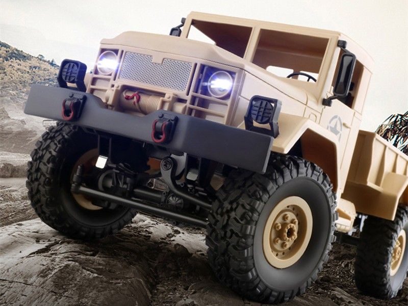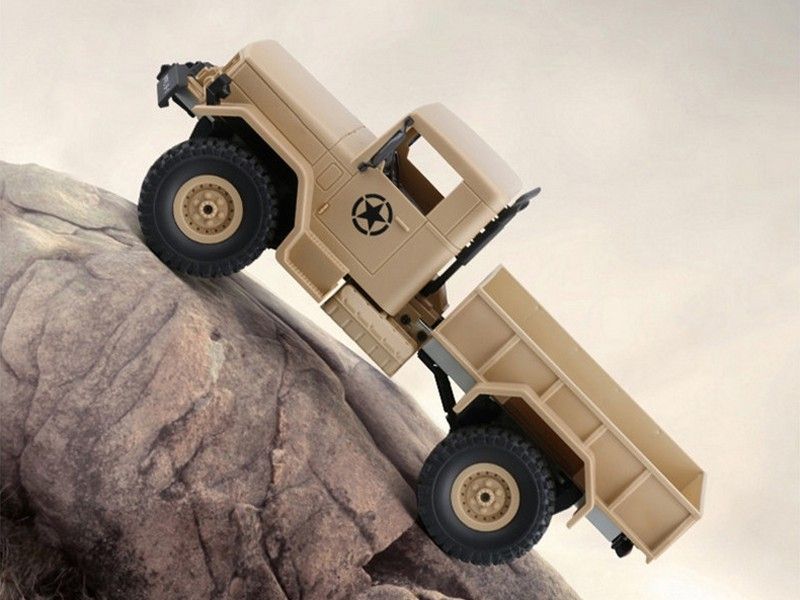 Радиоуправляемый военный грузовик, выполненный в масштабе 1/16. Модель оснащена полным приводом, действующей рессорной подвеской и мощным коллекторным электромотором. Выпускается в различных вариантах окраски, имеет богатую деталировку и светящиеся передние фары. В кабине прекрасная детализация интерьера. Кузов и кабина изготовлены из прочного АВS пластика и установлены на металлическую раму. Li-Ion аккумулятор 7.4В, 500мАч спрятан под открывающийся капот.